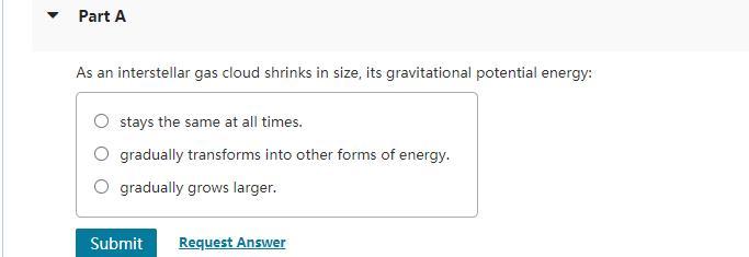 Solved Part A As An Interstellar Gas Cloud Shrinks In Size Chegg Com